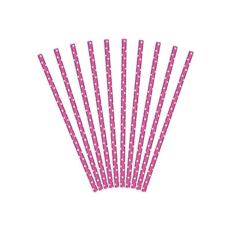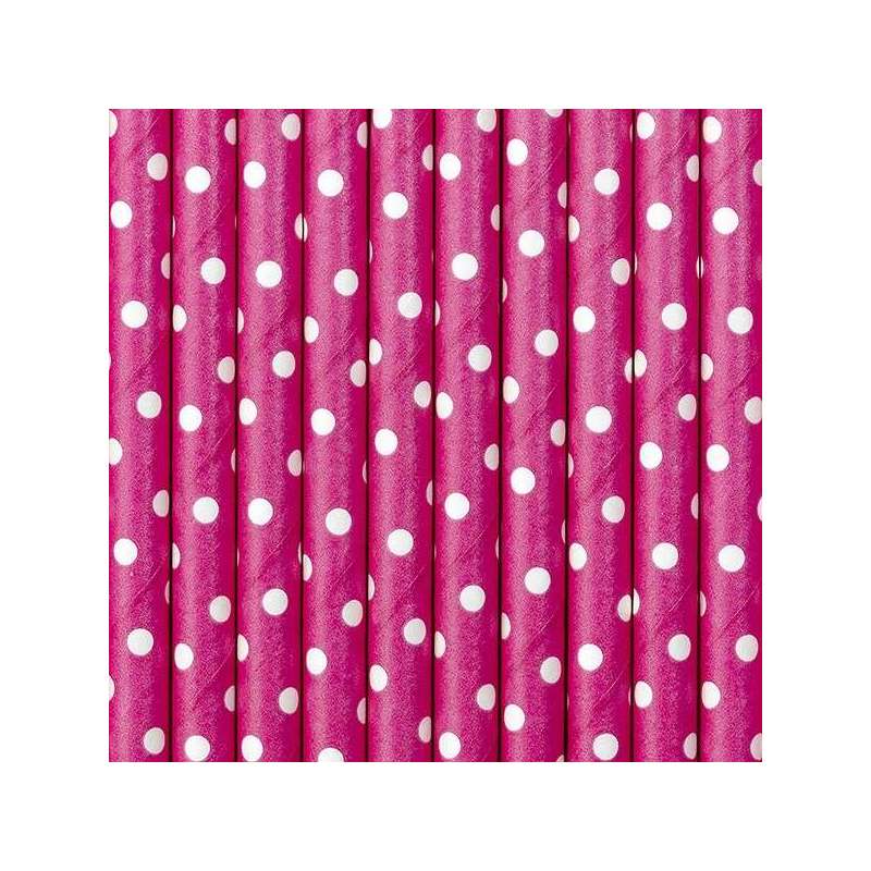 Cannucce in carta Fuxia con Pois Bianchi, perfette per il tuo Party allegro e colorato! La lunghezza è 20 cm e la confezione contiene 10 Cannucce.