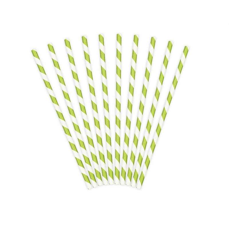10 Cannucce Verde Lime e Bianche a righe in Carta