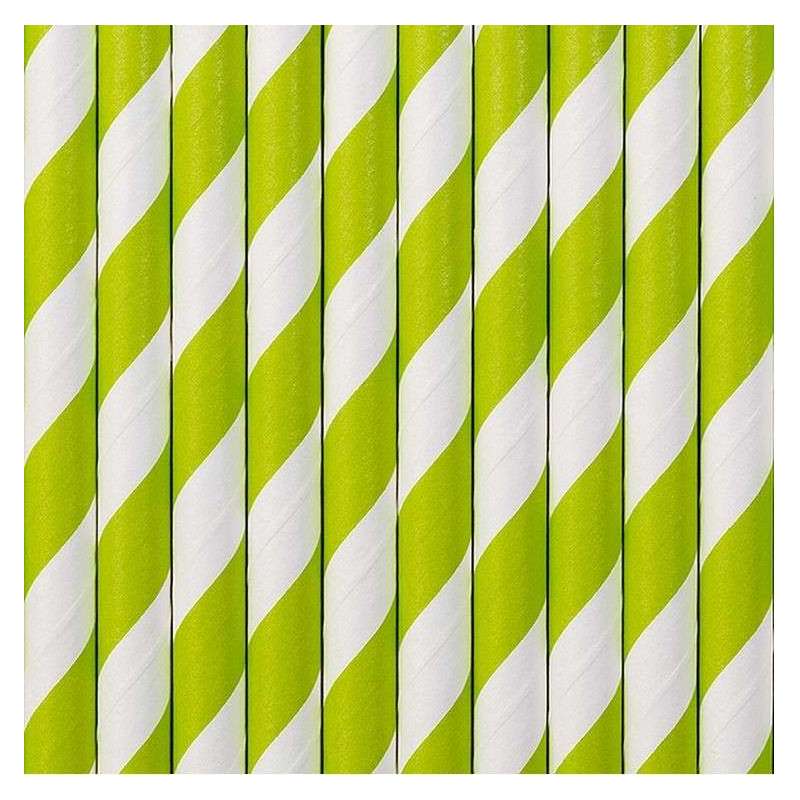 Cannucce in carta Verde Lime e Bianche a righe, perfette per il tuo Evento allegro e colorato! La lunghezza è 20 cm e la confezione contiene 10 Cannucce.