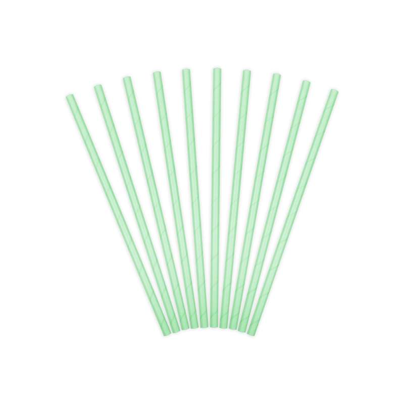 Cannucce in carta Verde Menta, perfette per il tuo Party dai toni Pastello! La lunghezza è 20 cm e la confezione contiene 10 Cannucce.
