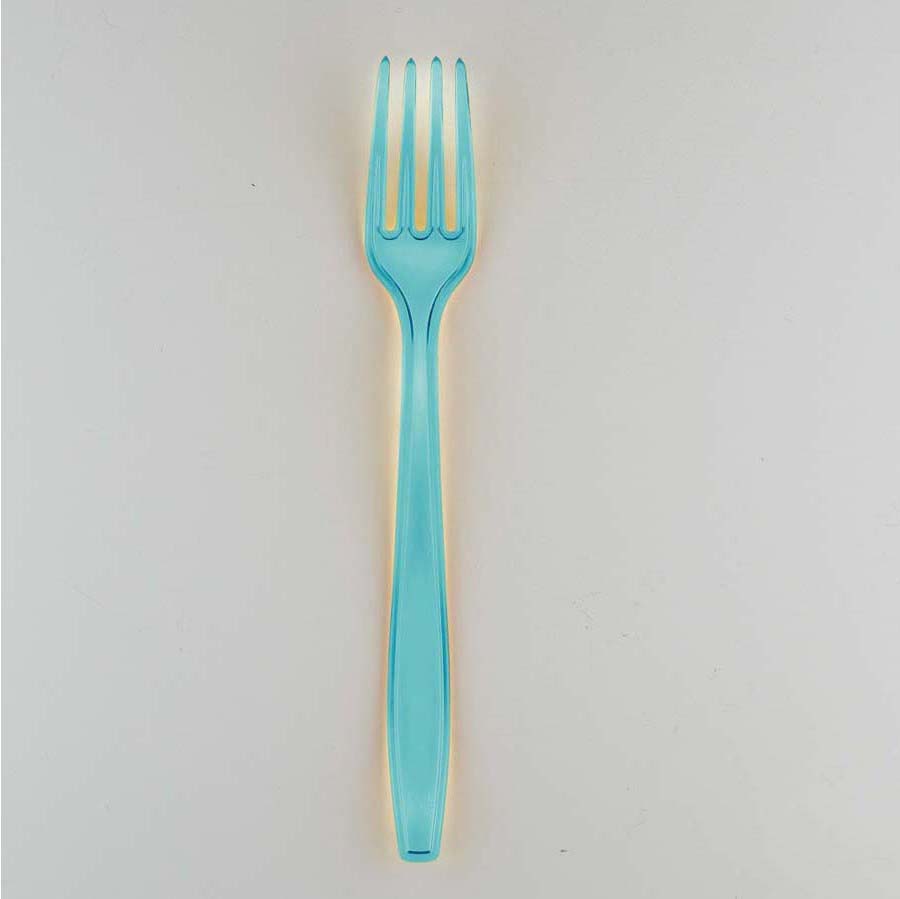 10 Forchette in plastica colore Verde Acqua dimensione 19 cm.