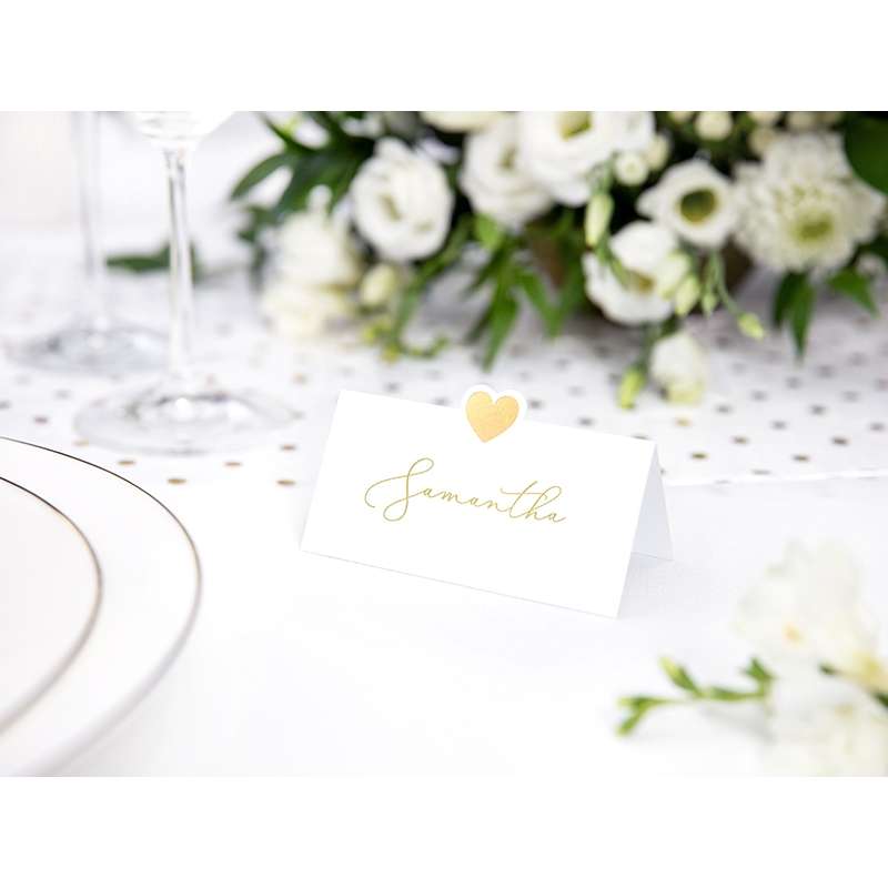 10 Segnaposto in cartoncino bianco perlato con Cuoricino Rose Gold, perfetti per rendere speciale la tua tavola!