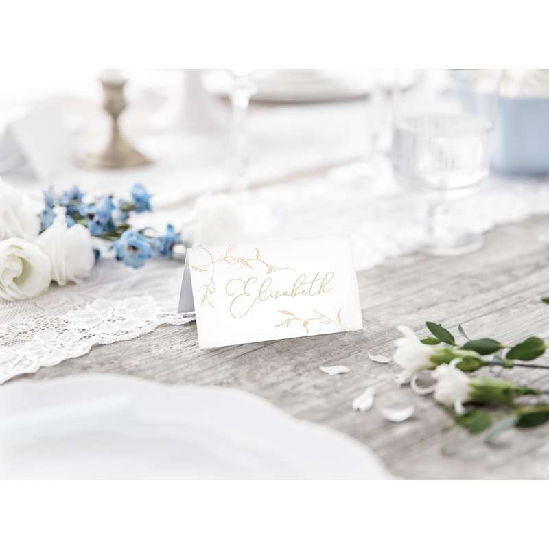 10 Segnaposto in cartoncino bianco con ramoscelli Oro, perfetti per rendere speciale la tua tavola!