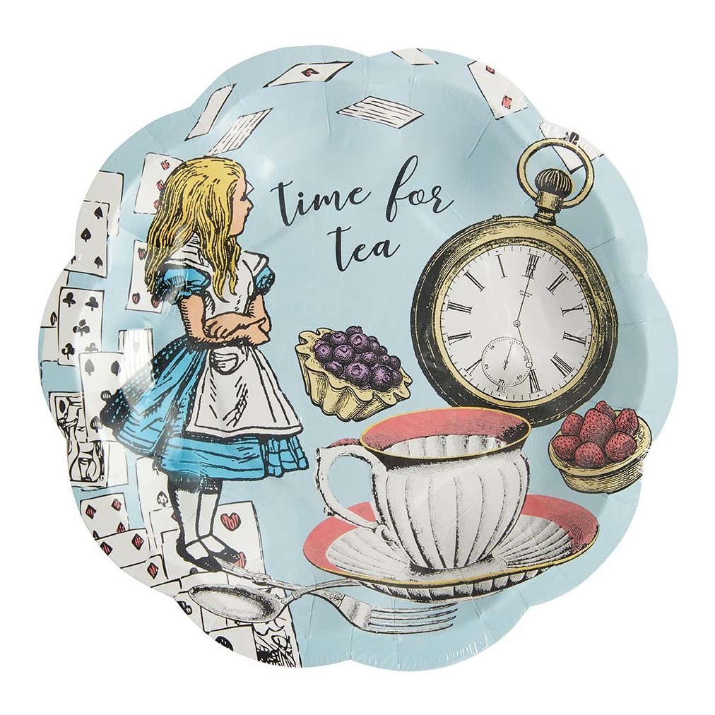 Splendidi piattini a tema Alice in Wonderland, perfetti per il tuo Tea Party! La confezione contiene 12 piattini in cartoncino eco-friendly.