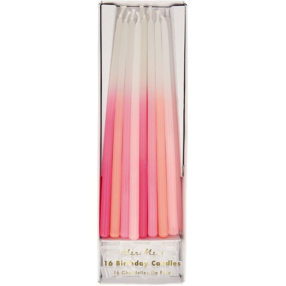 Splendide candeline a stelo in quattro diverse tonalità di rosa, perfette per il tuo Party elegante e colorato! La confezione contiene 16 candeline.