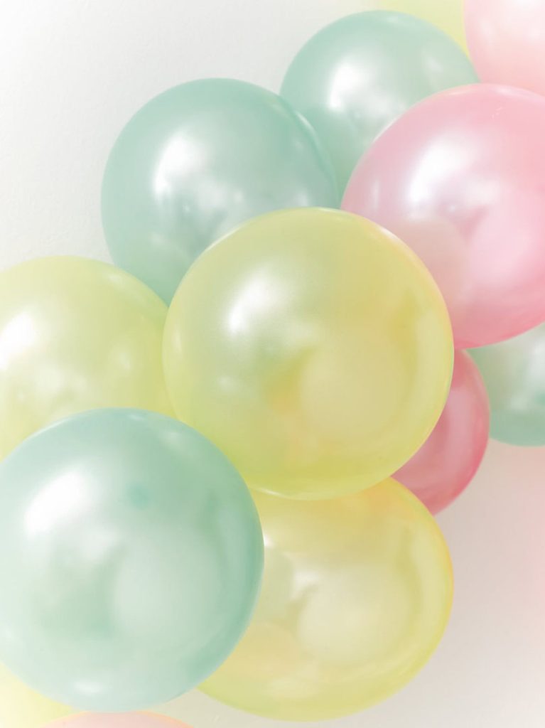 12 splendidi palloncini nelle tonalità pastello del giallo, rosa e verde menta, perfetti per il tuo party super colorato. Misurano 12″ quindi 30 cm e possono essere gonfiati sia ad aria che ad elio. La confezione contiene anche un filo per legarli tra loro!