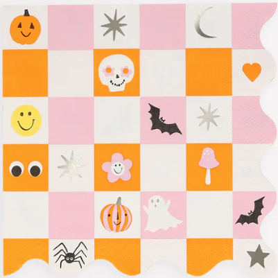 16 Spaventosi tovaglioli in carta a tema Halloween con quadretti e splendide illustrazioni, perfetti per spaventare tutti i tuoi ospiti! Dimensioni piegati: 16,5 x 16,5 cm.