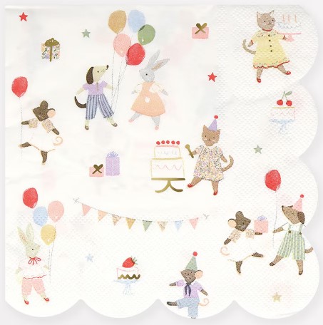 16 splendidi tovaglioli in carta a 3 veli con divertenti illustrazioni a tema animali e bordo smerlato, perfetti per un compleanno super originale! Dimensione piegati 16,5 x 16,5 cm.