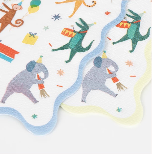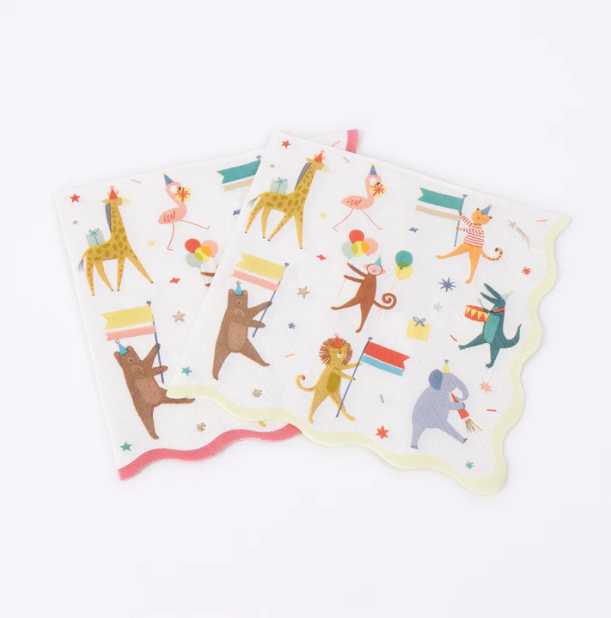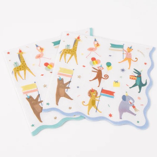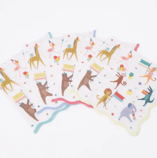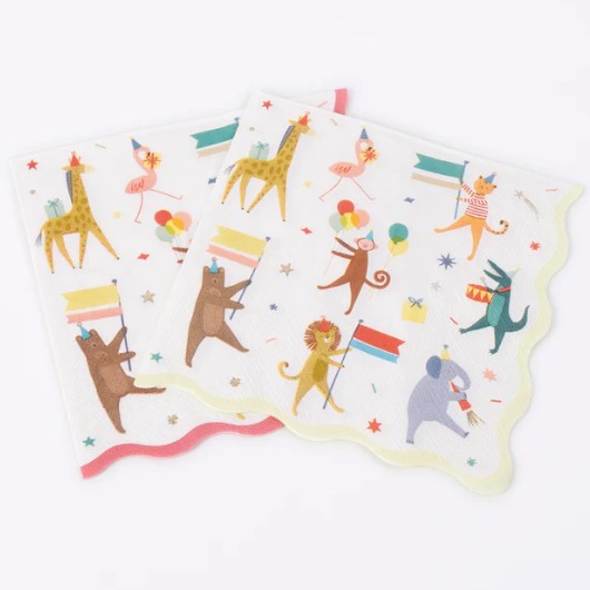 Incredibili tovaglioli a tema Animal Parade, perfetti per un party super colorato e divertente! La confezione contiene 16 tovaglioli in carta eco friendly di alta qualità a 3 strati dimensione 16,5 x 16,5 cm.