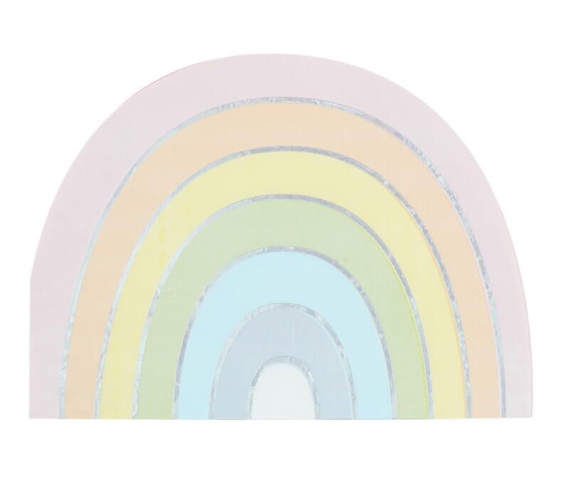 Meravigliosi tovaglioli sagomati a forma di arcobaleno pastello con dettagli iridescenti, perfetti per il tuo magico evento! La confezione contiene 16 tovaglioli dimensione 12 cm (H) x 17 cm (W).