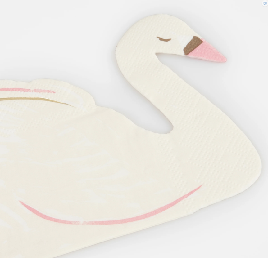 Meravigliosi tovaglioli sagomati in carta a 3 strati a forma di cigno con splendidi dettagli oro e rosa, perfetti per un party a tema principesse! Dimensione 17,8 x 10,8 cm.
