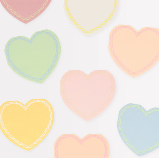 16 Meravigliosi tovaglioli a forma di cuore in 8 splendide tonalità pastello, perfetti per San Valentino! Dimensione 12,4 x 11,4 cm.