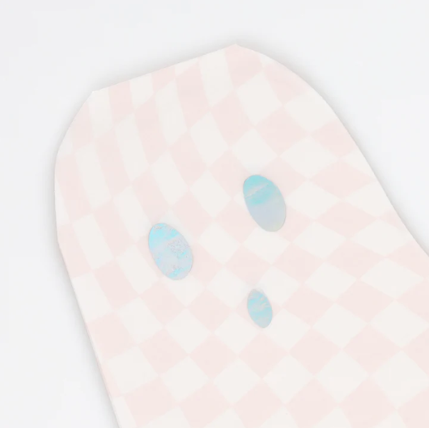 Incredibili tovaglioli sagomati a forma di fantasmino a quadretti, perfetti per il tuo Halloween Party. La confezione contiene 16 tovaglioli in carta di alta qualità a 3 strati dimensione 15,6 x 16,5 cm.