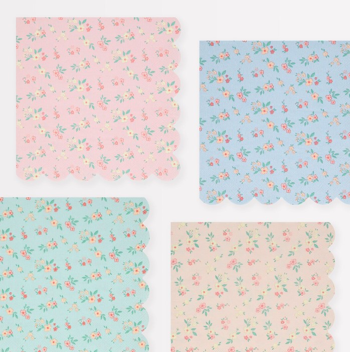 16 adorabili tovaglioli in carta a 3 veli in 4 splendide tonalità pastello e fiorellini, perfetti per un evento elegante e raffinato! Dimensione piegati: 16,5 x 16,5 cm.