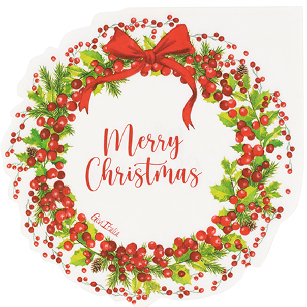 Splendidi tovaglioli sagomati a forma di ghirlanda di Natale, perfetti per rendere ancora più speciale il tuo Christmas Party!