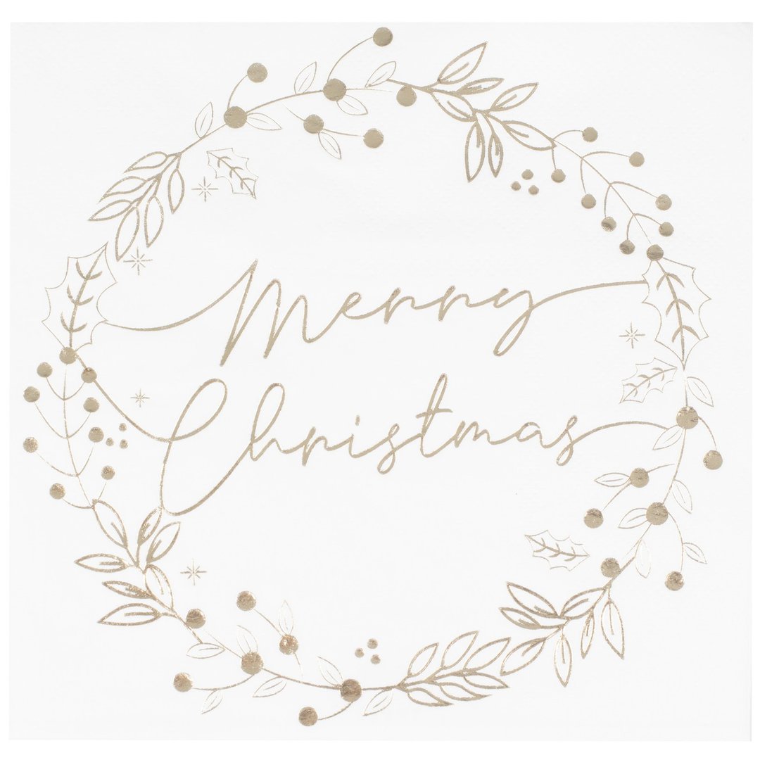 16 eleganti tovaglioli bianchi con scritta oro Merry Christmas, saranno meravigliosi sulla tua tavola di Natale! Dimensione 17 x 17 cm.