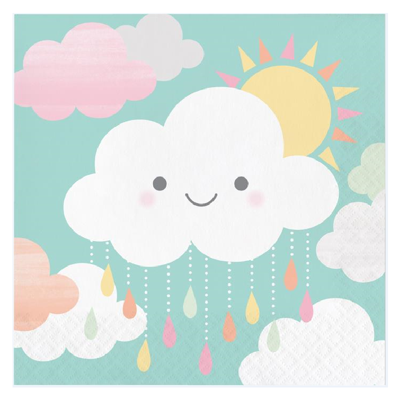 Tovaglioli con Nuvolette e Sole colori Pastello, perfetti per il tuo Party a tema Sunshine, Arcobaleni e Nuvolette! La dimensione è 33cm x 33cm. La confezione contiene 16 Tovaglioli in carta 2 veli.