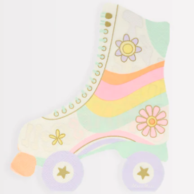 16 incredibili tovaglioli sagomati a forma di pattini a rotelle, realizzati in carta ecologica a 3 strati e dettagli oro. Dimensione 13,7 x 16,5 cm.