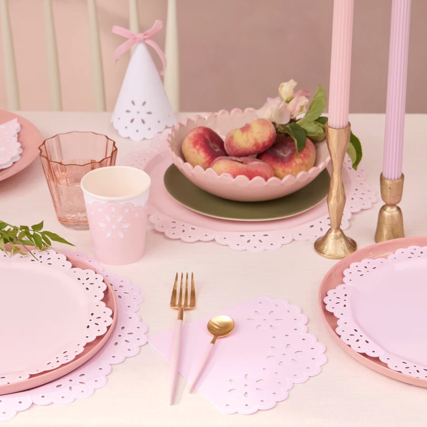 16 meravigliosi tovaglioli in carta a 3 strati che si ispirano al design in pizzo Broderie Anglaise con dettagli unici ed in 2 splendide tonalità pastello, perfetti per il tuo evento raffinato ed elegante! Dimensione 12,7 x 12,7 cm.
