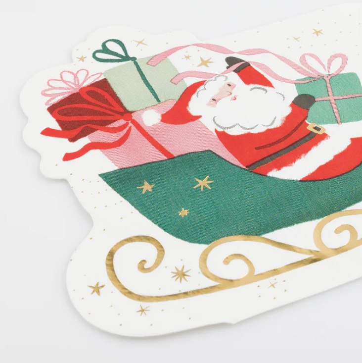 Babbo Natale è arrivato con la sua slitta carica di regali, quindi è decisamente il momento di festeggiare! Questi fantastici tovaglioli sagomati sono perfetti per aggiungere un tocco di allegria alla tua tavola di Natale! Così versatili, sono ideali per bambini ed adulti, e per cene o cocktail party.