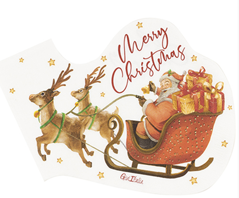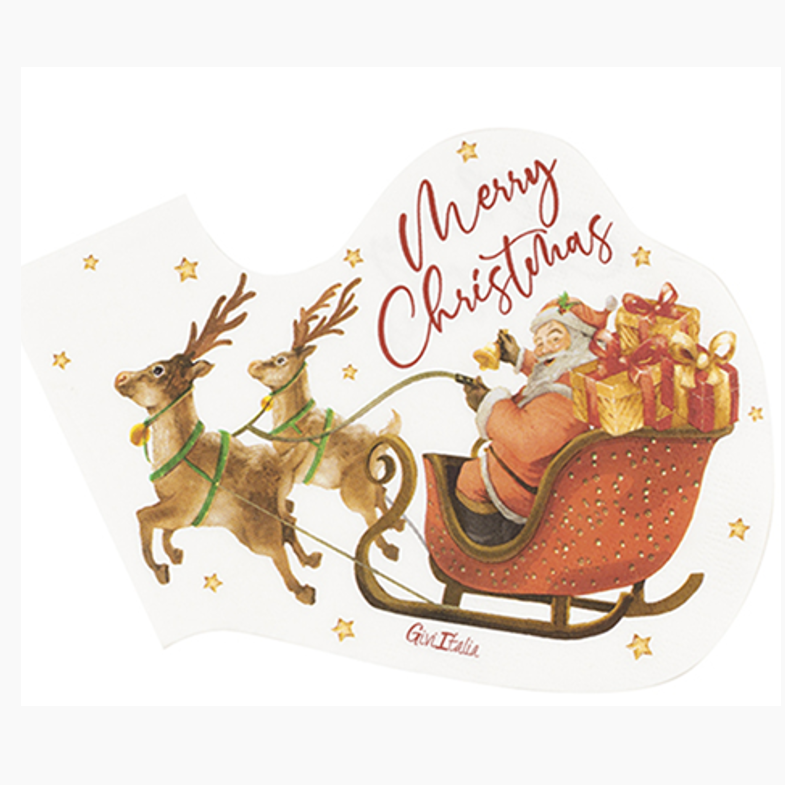 Splendidi tovaglioli sagomati a forma di slitta di Babbo Natale, perfetti per rendere ancora più speciale il tuo Christmas Party!