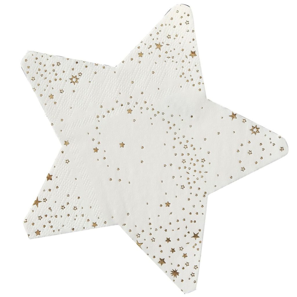 16 meravigliosi tovaglioli sagomati a forma di stella bianca con stelline oro, perfetti per la tavola di Capodanno! Dimensione 17 x 17 cm.
