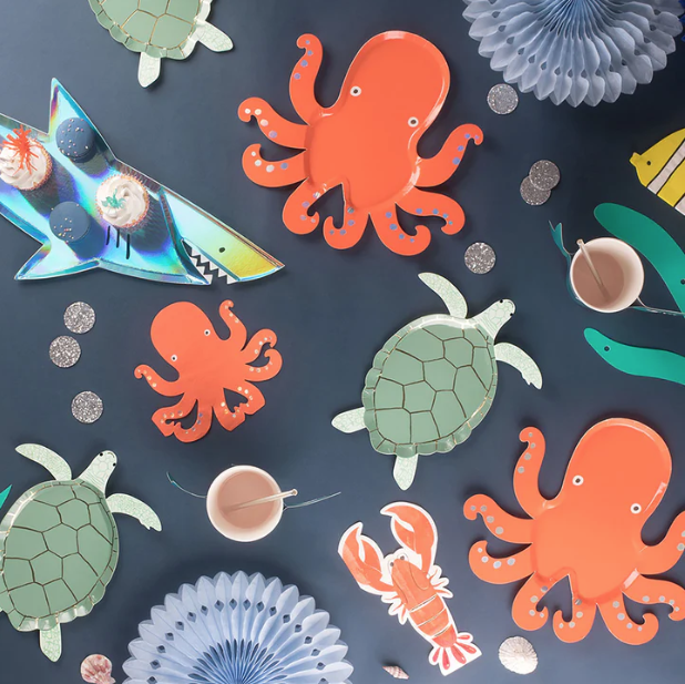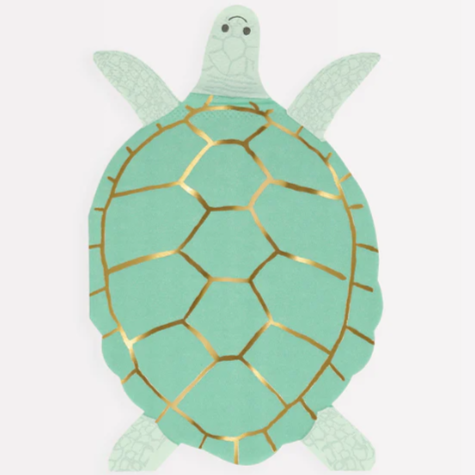 Meravigliosi tovaglioli sagomati a forma di tartaruga, perfetti per il tuo party a tema mare! La confezione contiene 16 tovaglioli in carta eco friendly a 3 strati e dettagli oro lucido.