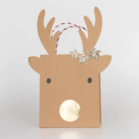 Favolose Party Bags a forma di Renna, perfette per rendere i regali ancora più deliziosi! Con i loro abbellimenti e dettagli glitterati saranno fantastiche anche sotto l’albero di Natale!