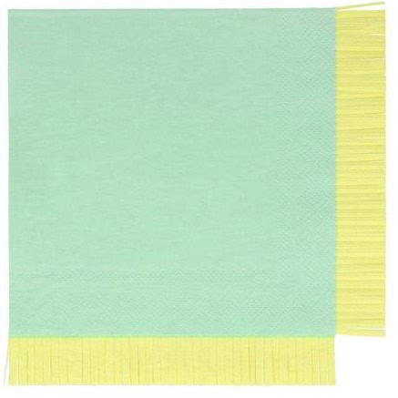Fantastici tovaglioli colori misti con frange, perfetti per il tuo Party originale e divertente! Sono realizzati in carta eco-friendly e la confezione contiene 20 tovaglioli con 4 fantasie. Misurano 165 x 165 mm.