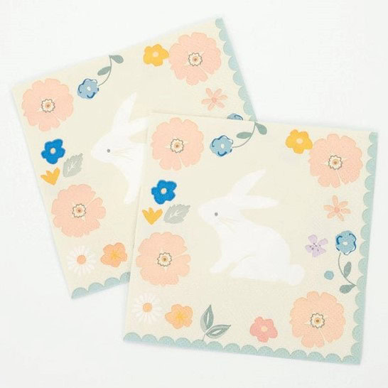 20 Tovaglioli Piccoli Coniglietto e Fiori