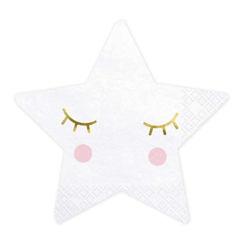 Tovaglioli sagomati a forma di Stellina Bianca. perfetti per il tuo Party a tema Nuvole, Stelle o Unicorni! La dimensione chiuso è 16cm x H.16cm, aperto 30cm x H.30cm. La confezione contiene 20 Tovaglioli in carta 3 veli con Dettagli in Oro Metallizzato.