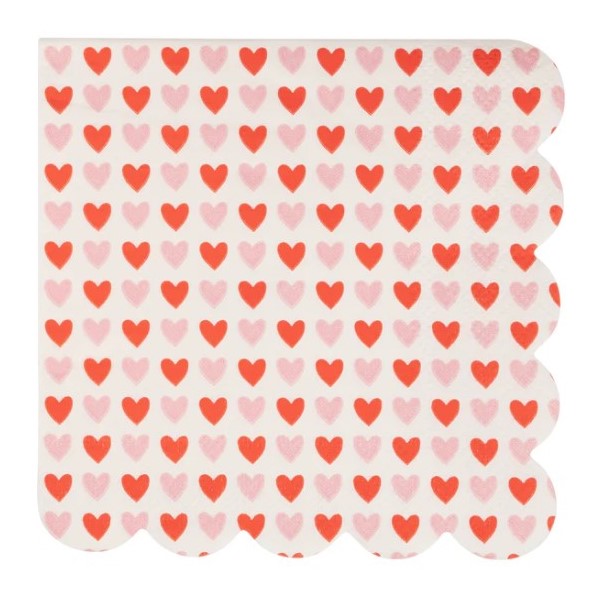 24 splendidi tovaglioli in carta con cuoricini rosa e rossi e bordo smerlato, perfetti per festeggiare San Valentino! Dimensione 12,7 x 12,7 cm.