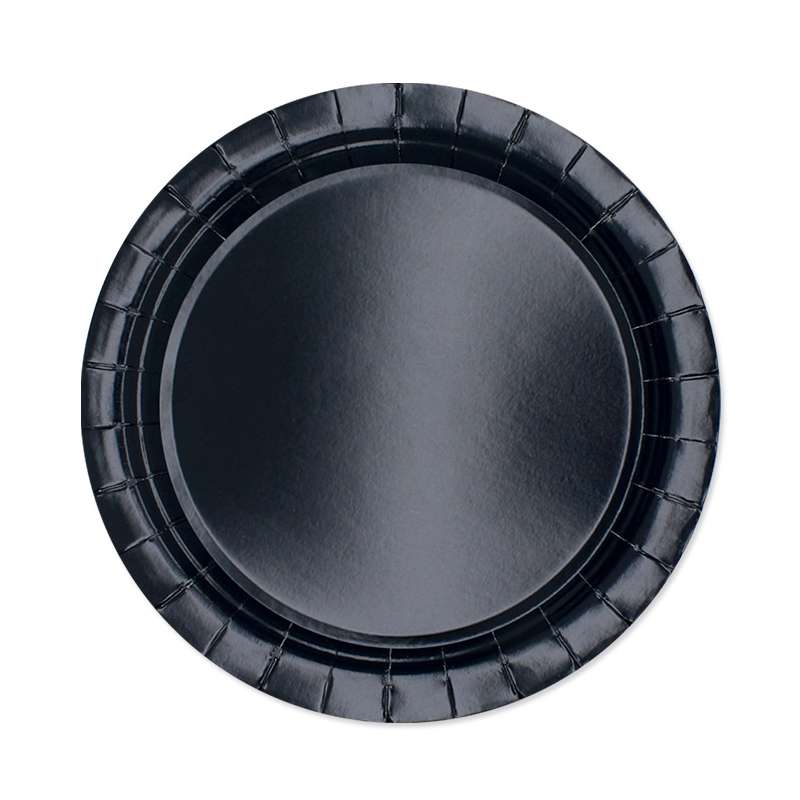 Piatti Neri in carta, perfetti per il tuo Party a tema Panda, Pirati, Halloween e tanto altro! Il diametro è 24 cm e la confezione contiene 25 piatti.