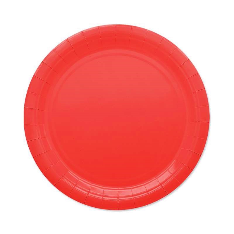 Piatti Rossi in carta, perfetti per il tuo Party allegro e colorato! Il diametro è 24 cm e la confezione contiene 25 piatti.