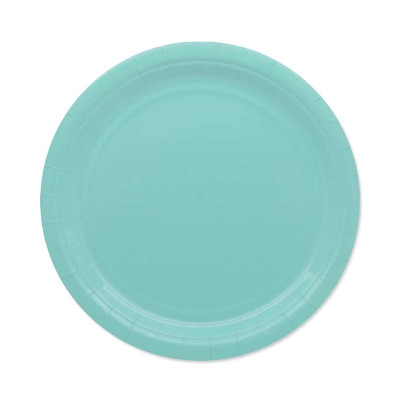 Piatti Verde Acqua-Tiffany in carta, perfetti per il tuo Party dai toni Pastello! Il diametro è 24 cm e la confezione contiene 25 piatti.