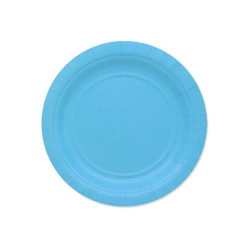 Piattini Azzurri in carta, perfetti per il tuo Party dai toni pastello! Il diametro è 18 cm e la confezione contiene 25 piattini.