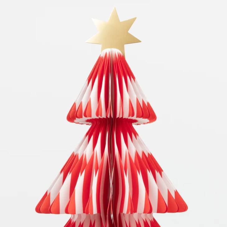 3 splendidi alberi di Natale in carta a nido d’ape, perfetti come centrotavola o decorazione natalizia! Le vivaci strisce e le scale in lamina d’oro aggiungono un tocco di festa alla tua casa. Inoltre, sono riutilizzabili: basta ripiegarli e tirarli fuori anno dopo anno per un’allegria immediata.