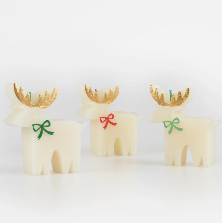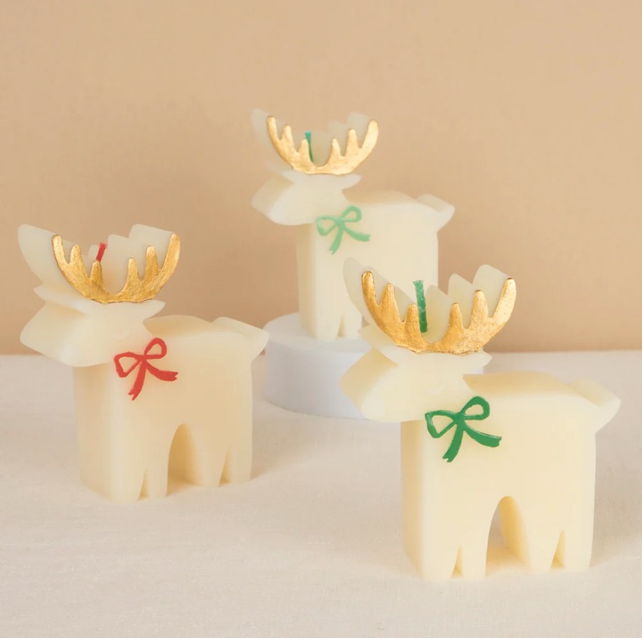3 splendide candele in cera d’avorio a forma di renne con fiocchetti colorati, perfette per rendere la tavola di Natale ancora più speciale o come regalo per la padrona di casa! Durata della combustione 1 ora.