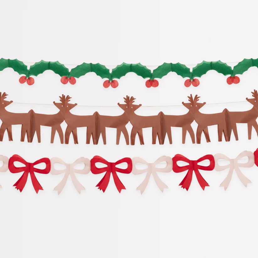 3 Festoni Agrifoglio, Renne e Fiocchi