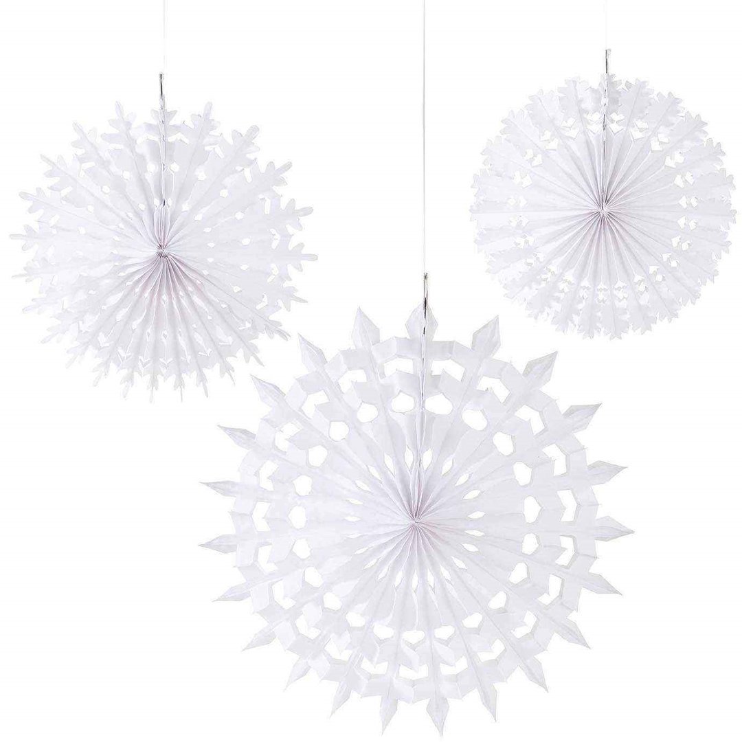 Splendidi Fiocchi di neve in carta, perfetti come decorazione natalizia! Ideali per essere posizionati sopra le finestre o appesi sopra il caminetto. La confezione contiene 3 rosoni in 3 disegni e dimensioni diverse.