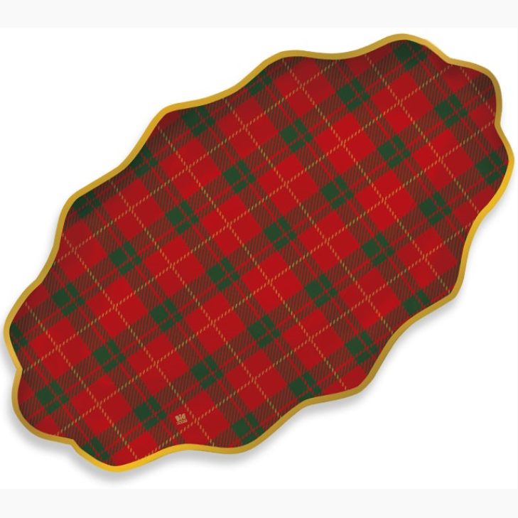 3 splendidi vassoi ondulati con fantasia tartan, perfetti per il tuo Christmas Party! Sono in cartoncino rosso verde ed oro.