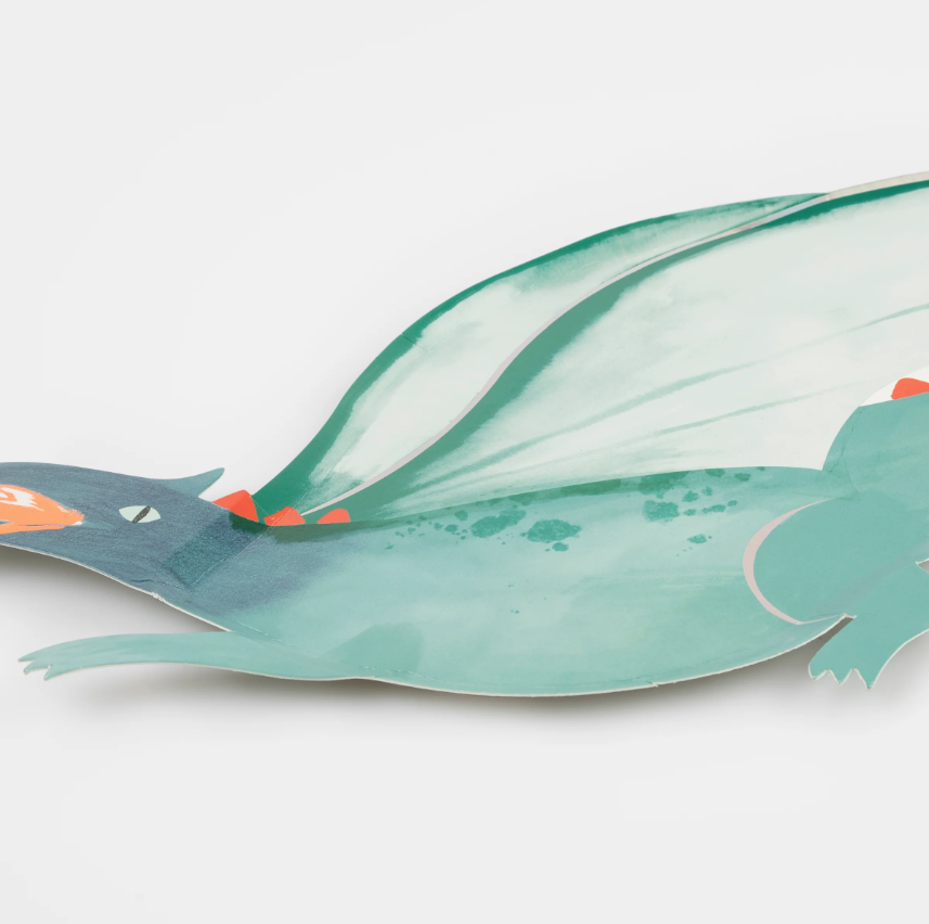 4 incredibili piatti sagomati in cartoncino eco friendly a forma di drago, perfetti da utilizzare anche come vassoi! Dimensione 45,7 x 25,4 cm.