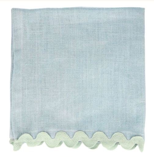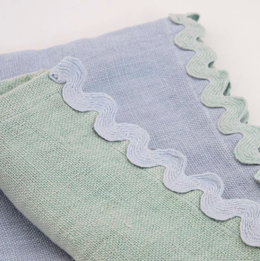 4 incantevoli tovaglioli dai toni pastello, realizzati in lino di alta qualità in 4 colori (rosa, pesca, azzurro e verde menta).