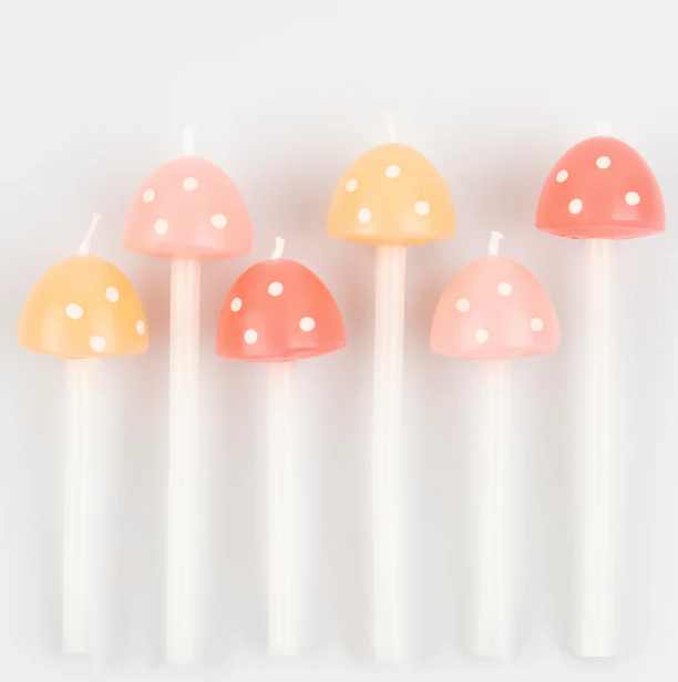 6 Adorabili candeline a forma di funghetti, perfette per il tuo Party a tema Bosco o Fatine! Sono realizzate con splendidi colori pastello e sono in 2 dimensioni, renderanno irresistibile la tua torta di compleanno!