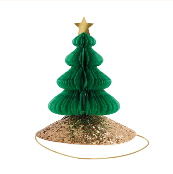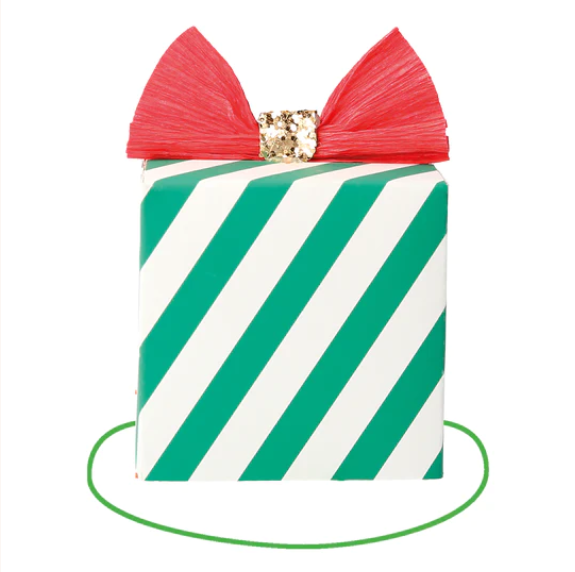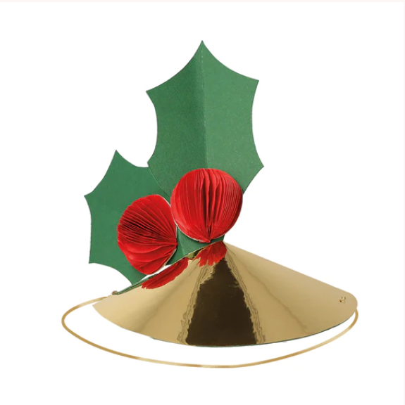 La confezione contiene 6 cappelli diversi con alberi di Natale 3D, agrifoglio e regali nelle tonalità allegre del rosso, verde ed oro con glitter ecologici.