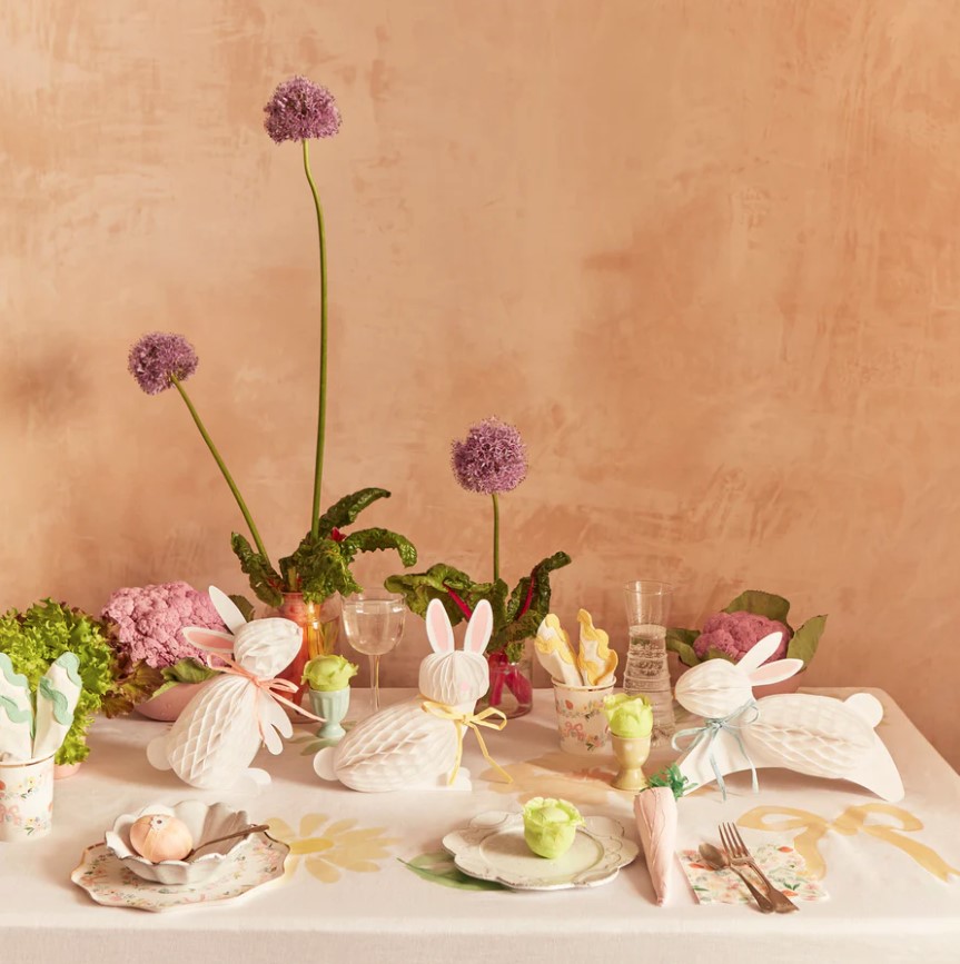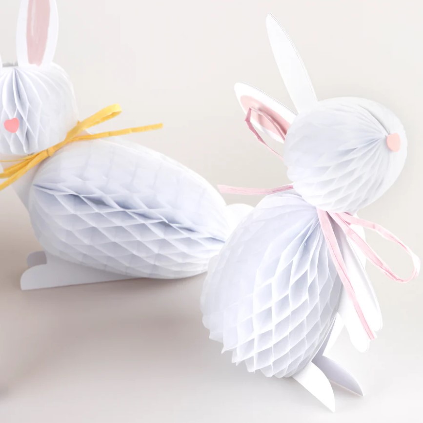 6 simpatici coniglietti in cartoncino con dettagli in carta velina a nido d’ape, perfetti come centrotavola di Pasqua o decorazione per il tuo evento a tema! Semplice montaggio con magneti. Altezza minima: 19,1 cm, altezza massima: 23,5 cm.