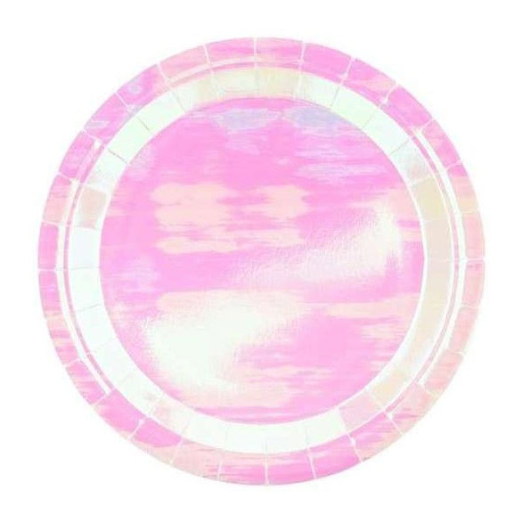 Piatti Iridescenti perfetti per il tuo Mermaid Party! Il diametro è 23 cm e sono in cartoncino Metallizzato. La confezione contiene 6 piatti.