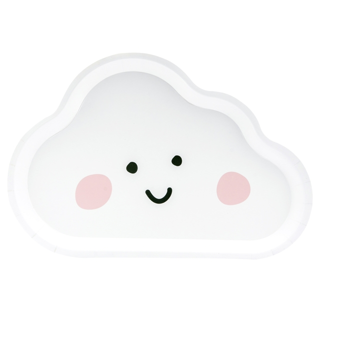Piatti Sagomati a forma di Nuvoletta Bianca! Perfetti per il tuo Evento dolce e raffinato! La dimensione è 26cm x 17cm e sono in cartoncino. La confezione contiene 6 piatti.