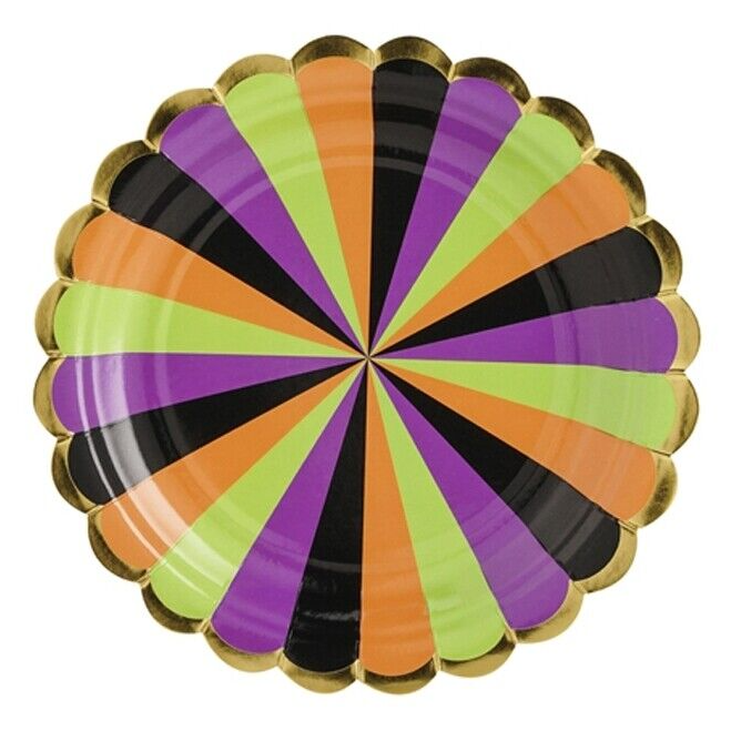 6 incredibili piattini in cartoncino con bordo smerlato, perfetti per il tuo Halloween Party! Diametro 18 cm.
