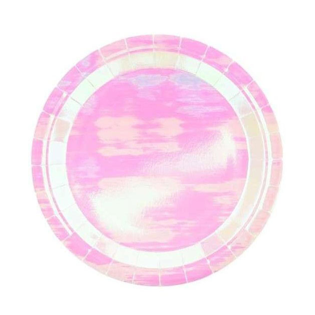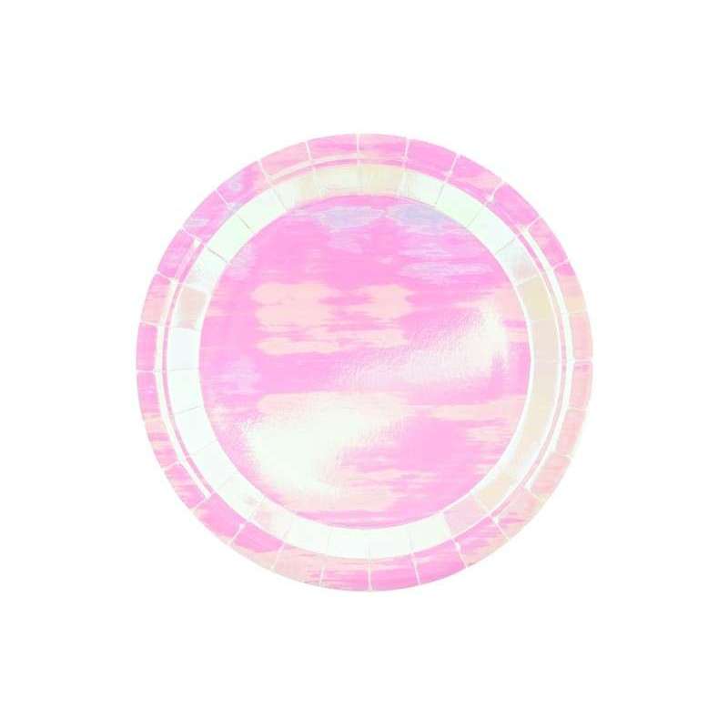 Piattini Iridescenti perfetti per il tuo Mermaid Party! Il diametro è 18 cm e sono in cartoncino Metallizzato. La confezione contiene 6 piatti.